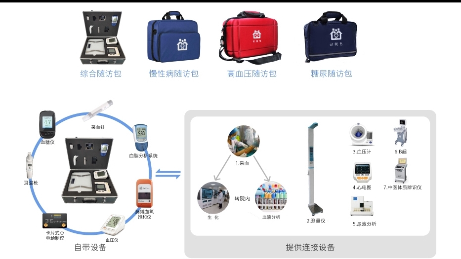 根據??铺厣约靶袠I規范定制。所有的體檢和化驗設備輕量化,醫生無需攜帶過多設備,并且檢查項目,效率極大提高。